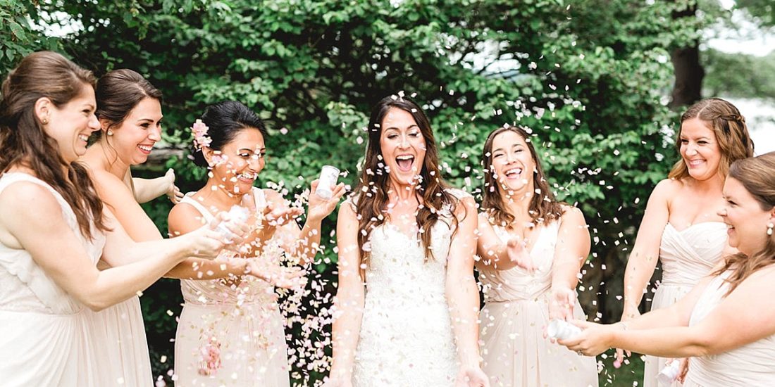 When I was prepping for this Moraine Farm wedding, I saw a touch of rain in the forecast, so I packed up the clear umbrellas. The forecast kept changing – rain, no rain, downpours…no one really had a clue what was going to happen. When Katie was putting on her dress, everything looked great – clear skies! – and then the ceremony started. Then in the middle of the ceremony the skies unloaded. Katie and Mike looked up, laughed and shared a special moment right before a clear umbrella arrived to give them cover. What a fun little adventure and a memory that Katie and Mike will have forever!